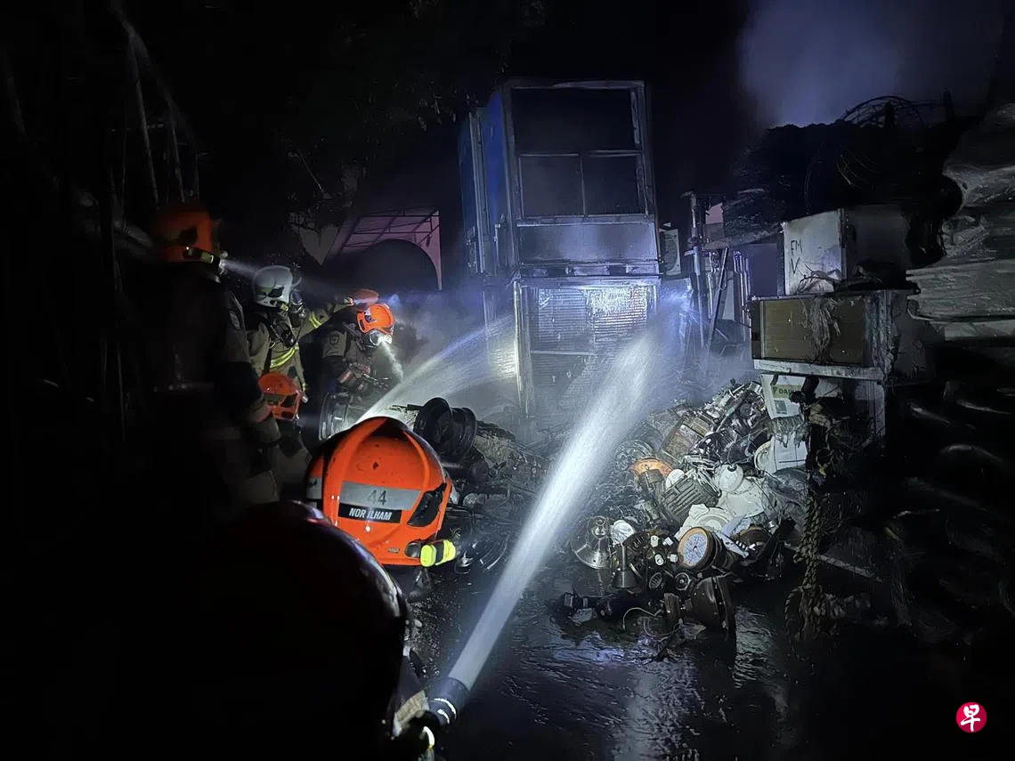 新加坡民防部队星期六(10月12日)晚上在脸书发文说,当局在当天晚上10时40分接到通报,指双溪加株环道(Sungei Kadut Loop)一仓库外发生火患。
