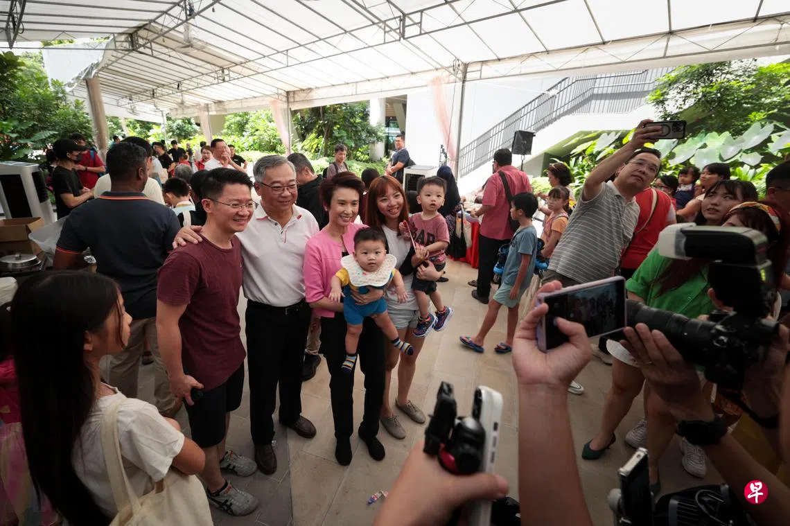副总理兼贸工部长颜金勇及西南市长刘燕玲星期天(10月13日)上午,在蔡厝港战备军人协会俱乐部举行的嘉年华会上,为西南幸福家庭计划(Family Bliss @ South West)主持推展仪式。