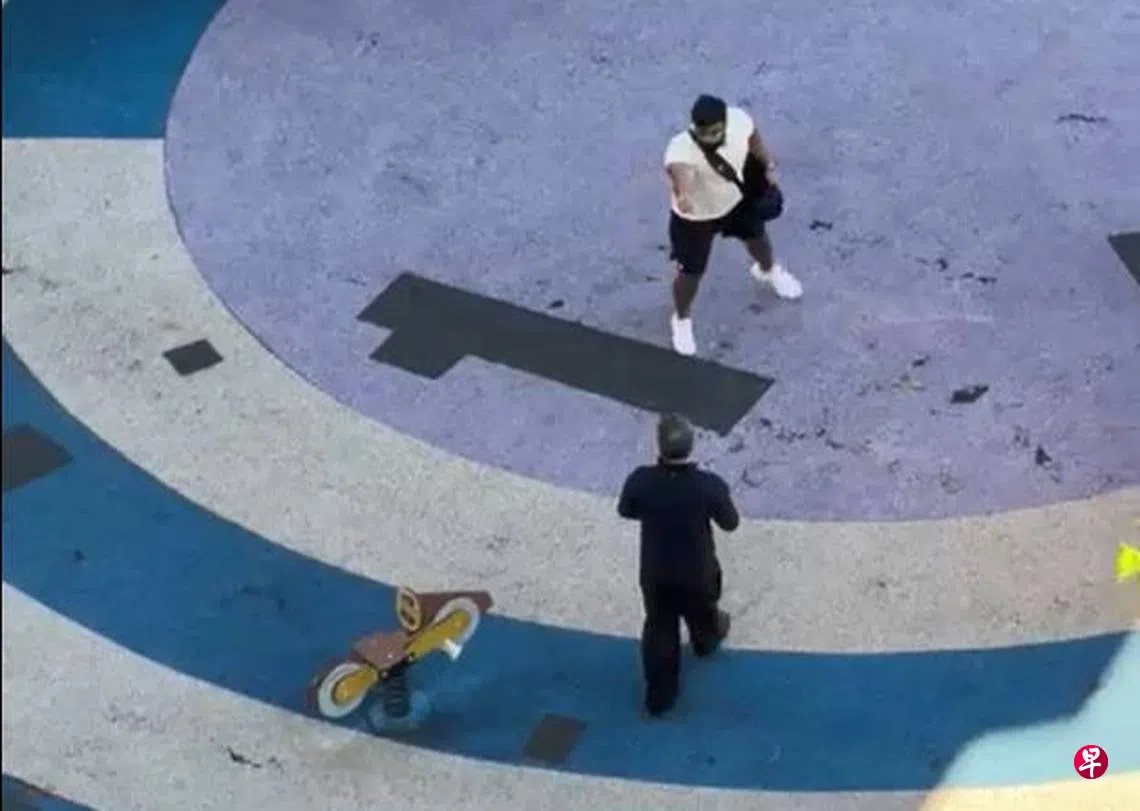 一名袁姓居民(35岁)受访时透露,一名五六十岁的男子开着车持刀在组屋楼下的公园,袭击了另一名男子,导致男子受伤,过后被新加坡民防部队的救护车送往医院治疗。