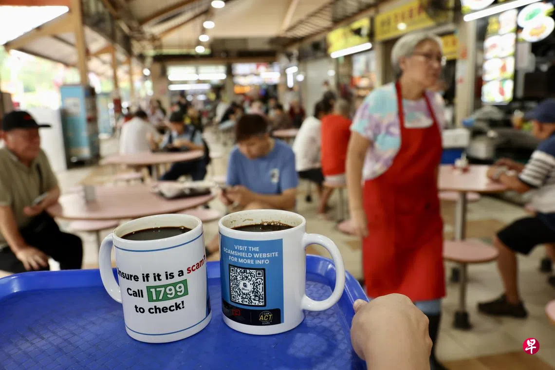 当局目前在文礼小贩中心推出960个杯子。下来推出的设计则印上本地五大诈骗类型的信息,其中包括求职、投资和电子商务诈骗等。
