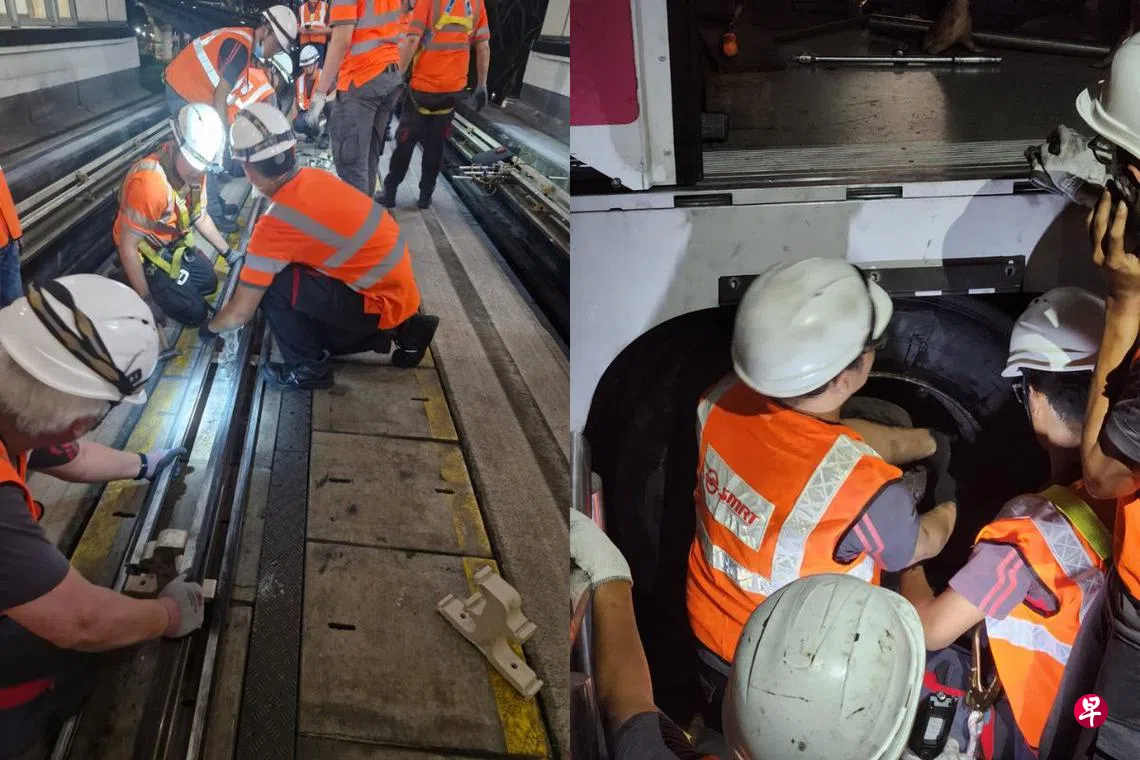 SMRT星期三清早5时零7分在脸书贴文说,工程人员彻夜进行抢修,已修好一小段损坏的供电轨,并把这段铁轨带回车厂进一步检查。