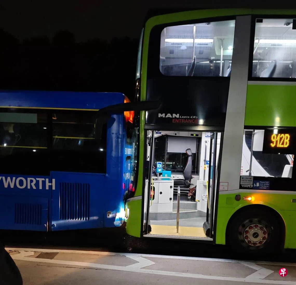 根据网民上传的照片,涉事的是912B号路线SMRT双层巴士和汉达英达的CW1巴士。