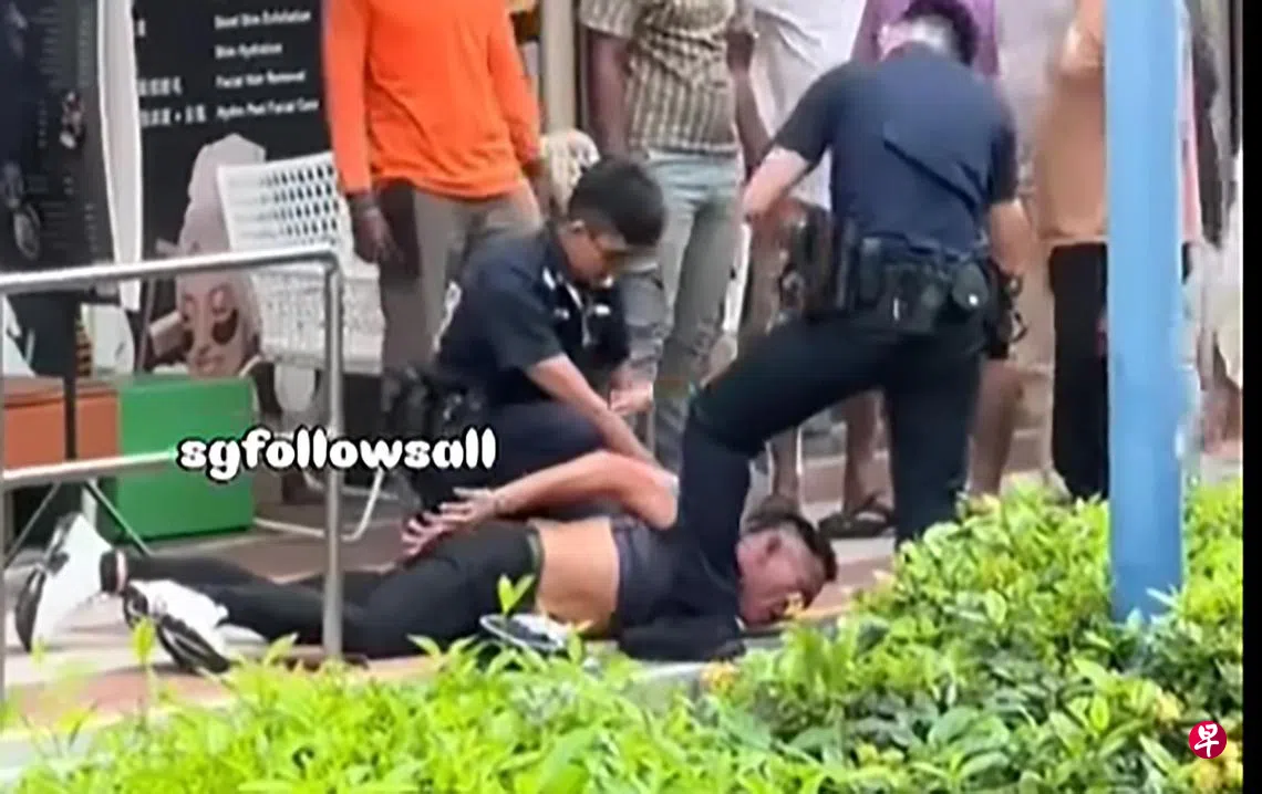 社交媒体脸书页面“ROADS.sg”星期六(10月26日)上载一段1分40秒的视频,内容可见两名新加坡警察部队警员与至少四名公众,在一座组屋底层试图控制一名男子。