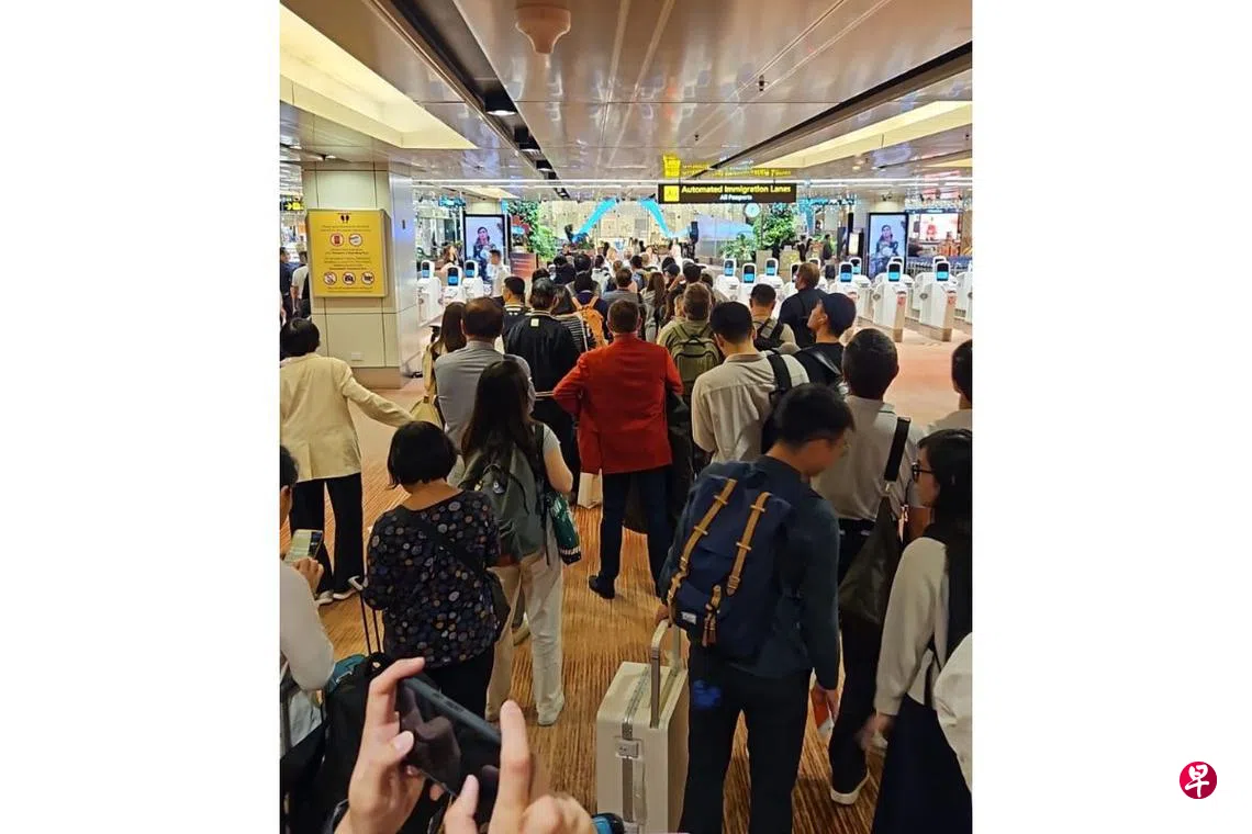 樟宜机场第一搭客大厦的免护照通关系统星期天(11月3日)凌晨发生故障,40台机器被指“宕机”无法刷脸通关,导致有乘客等半小时仍过不了关,通关队伍一度排起长长人龙。