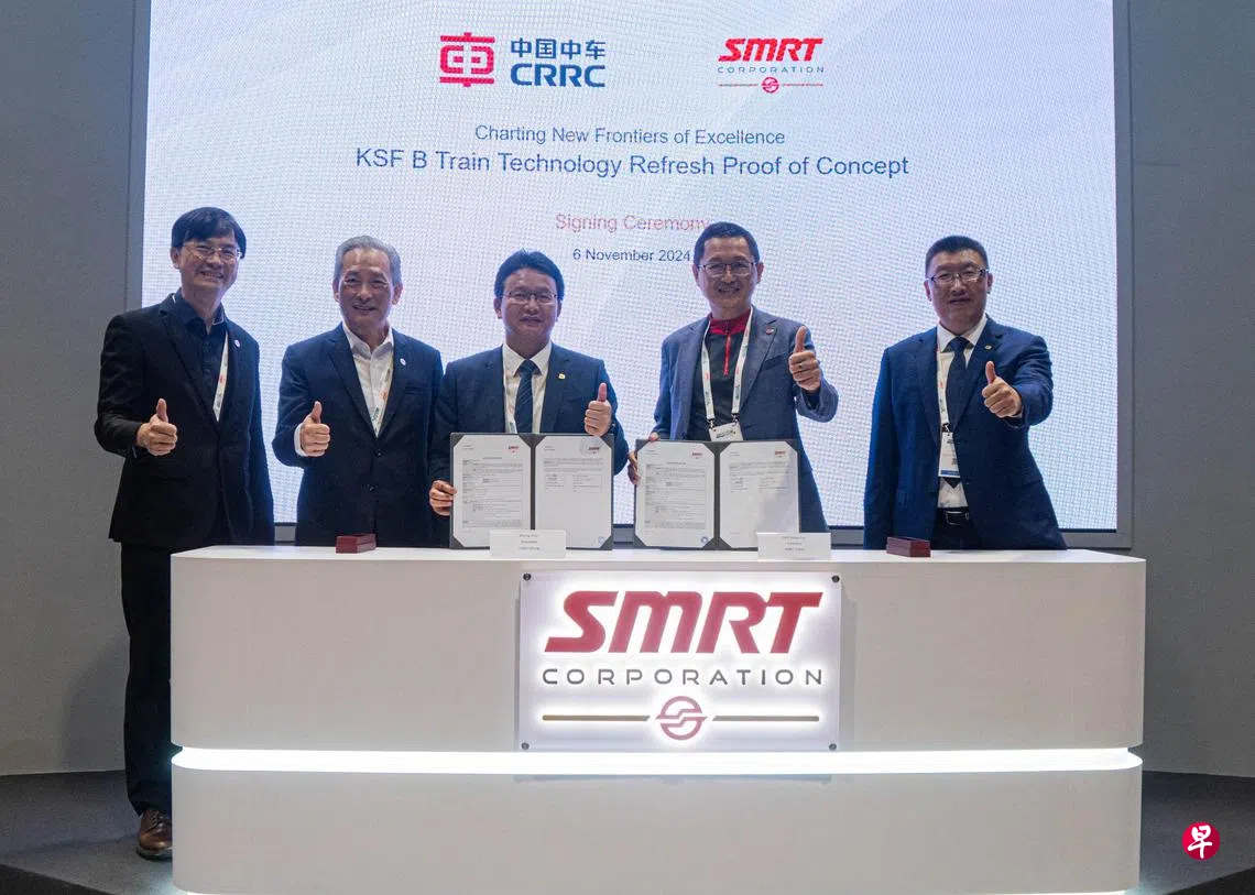 SMRT星期三(11月6日)发文告说,与中国中车集团旗下的中车青岛四方机车车辆股份有限公司(简称中车四方),在新加坡国际交通大会暨展会(SITCE)上,签署两项协议。