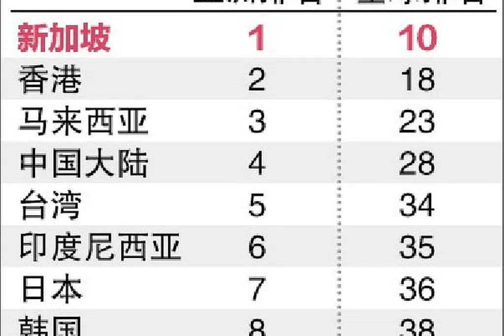 新加坡在本次排名中,名次从去年的全球第七,上升至第五位,并继续领先亚洲。