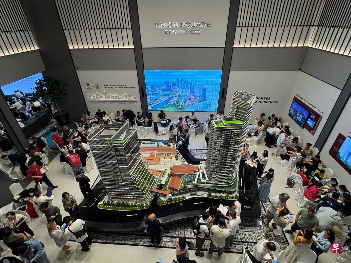 位于合乐路(Havelock Road)的誉岭峰(Union Square Residences)开盘首日卖出75个单位,相当于总单位数量的20.5%,平均销售尺价约为每平方英尺3200元。