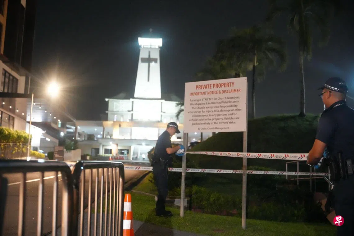 这起持刀伤人事件发生在星期六(11月9日)傍晚约6时30分,地点是武吉知马路上段的圣若瑟堂。 (谢智扬摄)