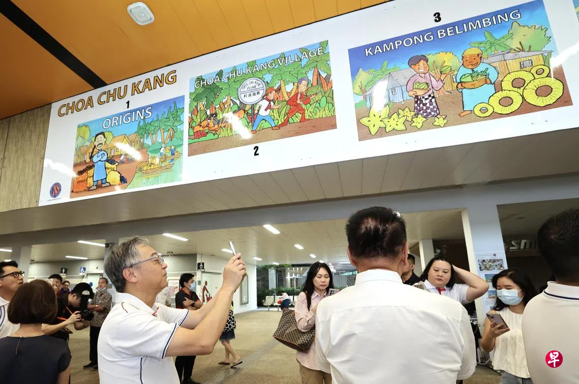 从早期的种植园和甘榜风貌,到碧林军事主题的游乐场,再到新加坡第一条轻轨系统—武吉班让轻轨的运行,蔡厝港地铁站“漫画联系”壁画讲述这一带的发展和丰富的文化遗产。