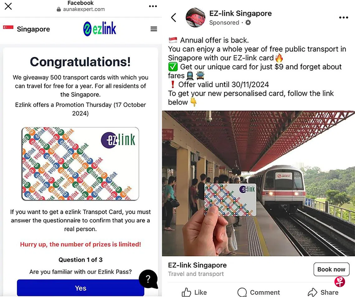 在这类型骗局中,受害者通过脸书或Instagram等社交媒体平台看到声称出售易通卡的广告或贴文,内容是包括当局正在回馈公众,推出免费易通卡,或者是有大促销,让公众以低廉价格购买能一整年无限次搭乘公共交通的易通卡。