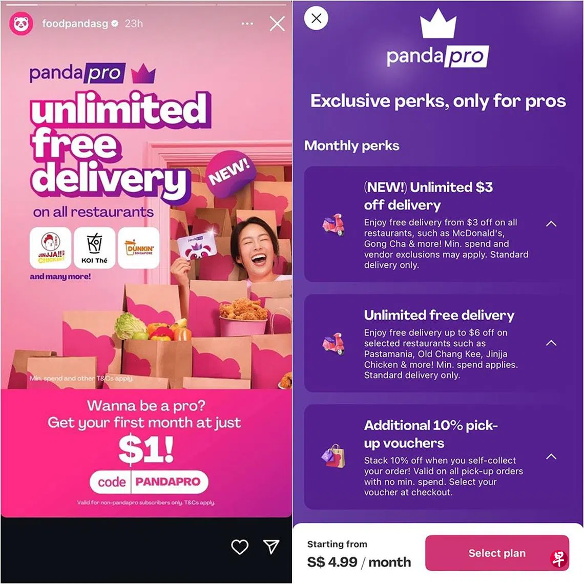今年7月1日至9月30日的订阅服务期间,Pandapro打出“所有餐厅无限免费送餐”的广告语,并在多个平台上,包括Foodpanda的Instagram页面和应用内,以及巴士站等公共区域的广告牌上展示。