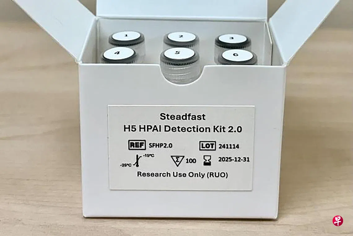新加坡科技研究局星期三(11月20日)发文告说,旗下医疗诊断发展中心(Diagnostics Development Hub,简称DxD Hub)与日本国立环境研究所合作,成功开发出名为Steadfast的高致病性H5N1禽流感病毒检测试剂盒。