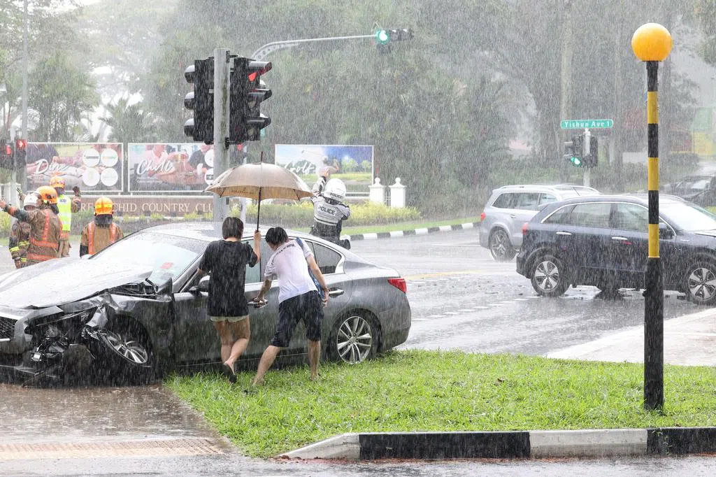 根据读者提供的照片,汽车的引擎盖在冲撞后凸起、零件散落一地,巴士右侧有明显擦撞的痕迹。事发后,现场来了数名民防部队人员和交通警察,伤者陆续被抬上救护车。