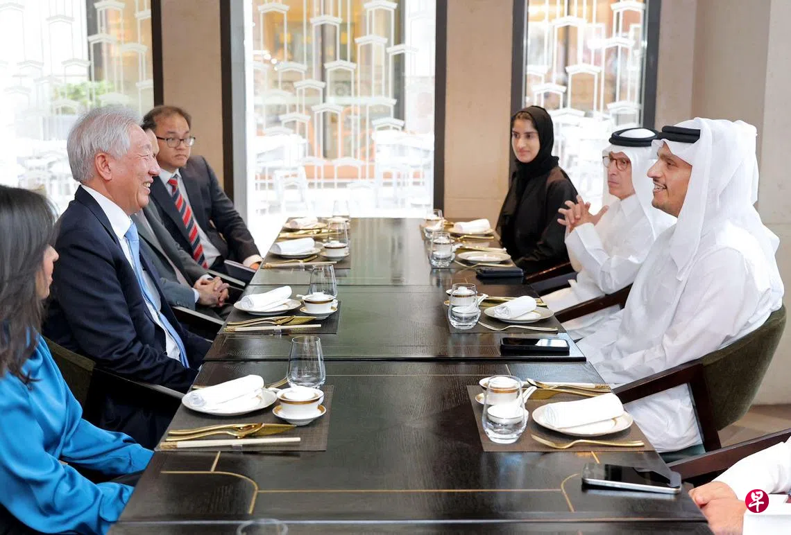 张志贤同日也和卡塔尔副首相兼国防事务国务部长萨乌德会面。双方强调同为小国的新加坡和卡塔尔有着共同的利益,以及探讨如何在共同关心的领域加强合作。
