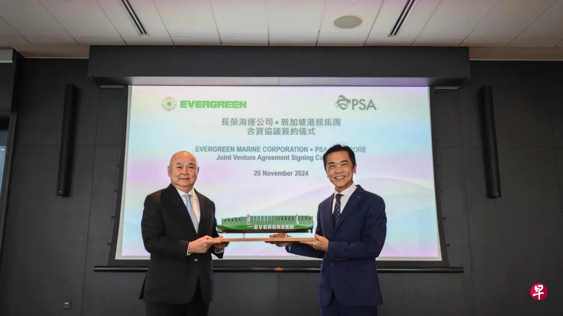 双方星期二(11月26日)发布联合文告说,合资码头预计将于2024年底投入运营。这一战略合作伙伴关系,将在新加坡港务集团为长荣海运快速扩张的全球船队,提供长期的码头容量保证。