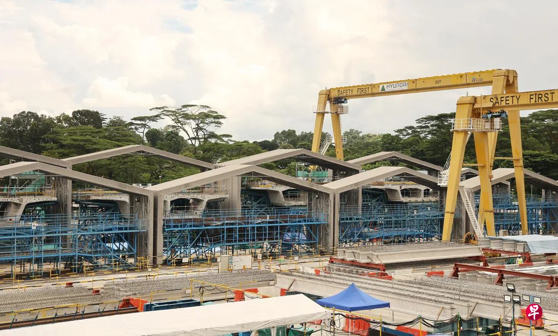 为节省时间和空间,高架桥所需的多数结构都在五个预制场制作。
