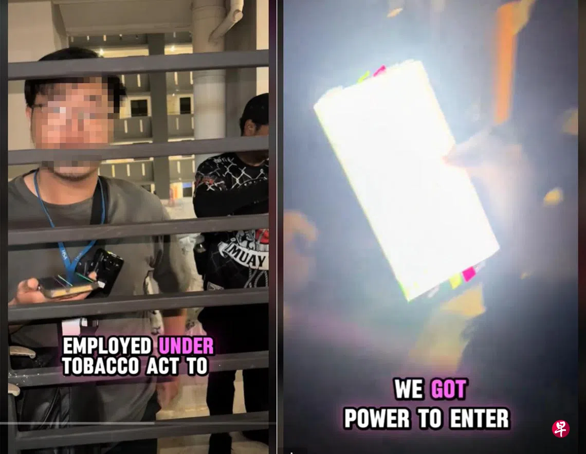 拒绝让执法人员进屋搜查是否有电子烟,男子拍下过程放上网引起议论。卫生科学局受询时表示,执法人员有权在没有搜查令的情况下,进入任何场所检查或扣押物品。涉事男子目前正在协助调查。