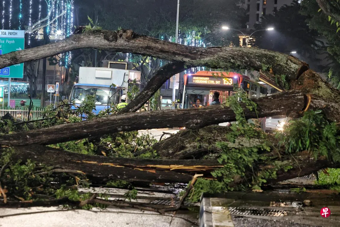 有读者通知《新明日报》,大巴窑中路第79C座组屋巴士站前的路段,有一棵大树突然倒下,当时正下着倾盆大雨。