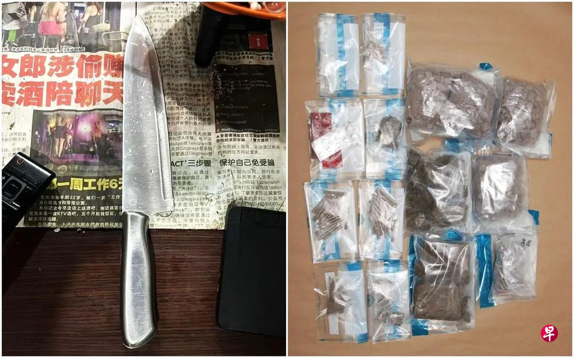 肃毒员于星期五早上在中部地区一个住宅单位展开突击时,屋里的男子拒绝开门,警方强行破门后,发现一名涉嫌贩毒的60岁新加坡男子手里握着一把刀子。肃毒员迅速将他制伏并逮捕,确保没人受伤,随后在单位搜出约2395克海洛英、722克大麻、25克冰毒、44颗艾利敏5号和两颗爱它死药丸。