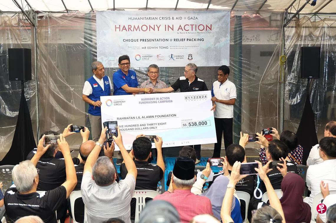 活动上,族群与宗教和谐圈(Racial and Religious Harmony Circle)也把在今年10月1日至11月30日,通过不同信仰机构和组织筹得的53万8000元,交给全福基金会,支持他们为加沙地带难民提供人道援助。