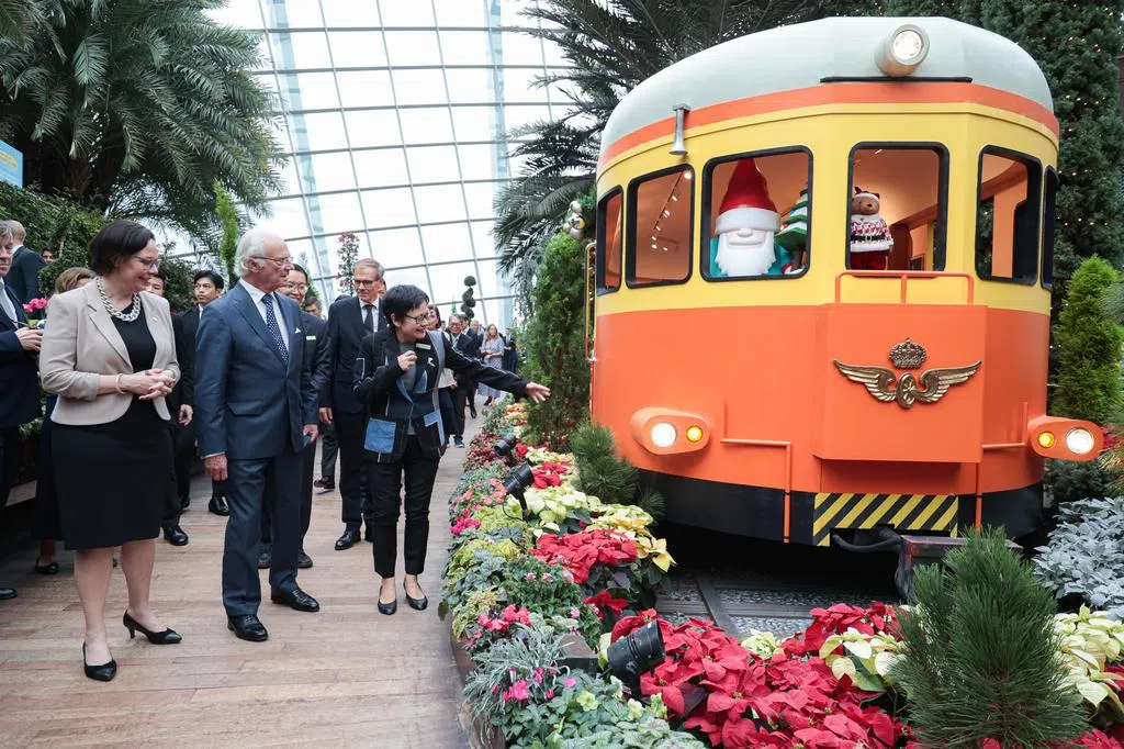 滨海湾花园较早前也与瑞典驻新加坡大使馆合作,在花穹重现一节复刻的1950年代瑞典铁路巴士车厢,车厢内展出从瑞典铁路博物馆(Swedish Railway Museum)借来的多件古董,也展示丹麦、芬兰、挪威和瑞典的铁路景观。