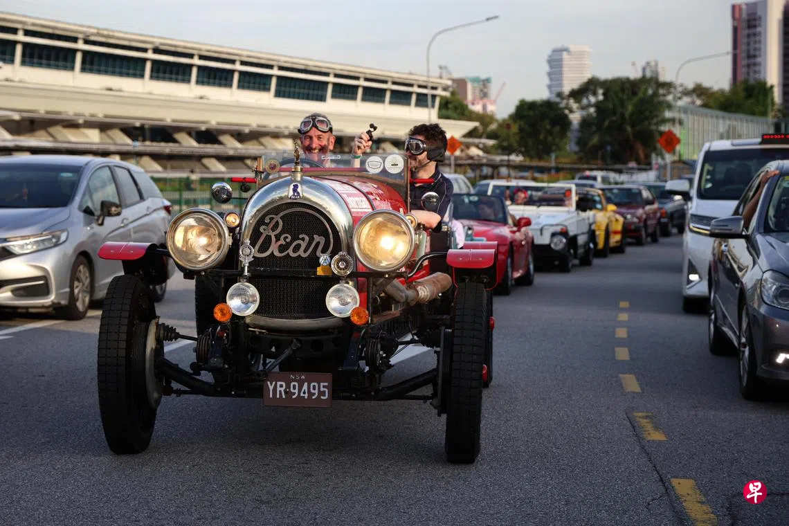 本地街头星期五(12月6日)出现了一辆挂着澳大利亚注册车牌的红色古董车,车上两人戴着手套和护目镜,引起不少人瞩目。这辆百年古董车经修复,从伦敦启程,途经欧洲、中东,前后用了两个多个月才来到新加坡。