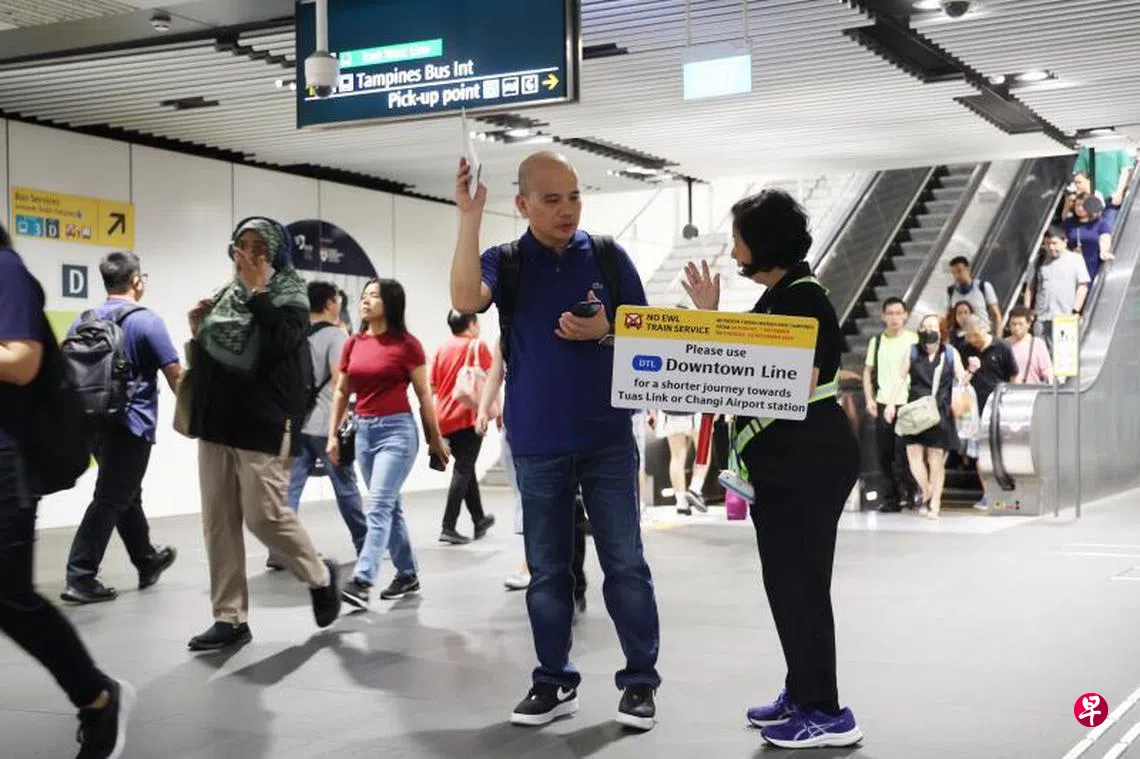 据早前报道,经营东西线的SMRT,与陆路交通管理局在列车服务调整期间,加派五倍人力到受影响车站;SMRT也在星期一和星期二,派更多人员到受影响车站协助公众。