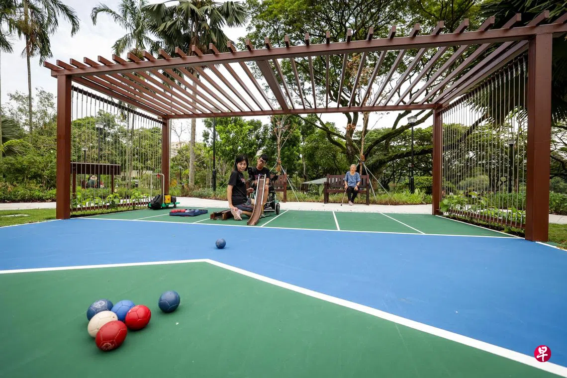 漫步在弯道间,享受花草芬芳,聆听虫鸣鸟啼,放松身心;或是在湖畔微风中摇动轮椅,挑战一场障碍赛……位于榜鹅公园的康疗花园正式开放,里头设有本地首个户外硬地滚球场等,适合年长者和行动不便者使用的设施,为他们提供更多亲近自然和运动放松的好去处。
