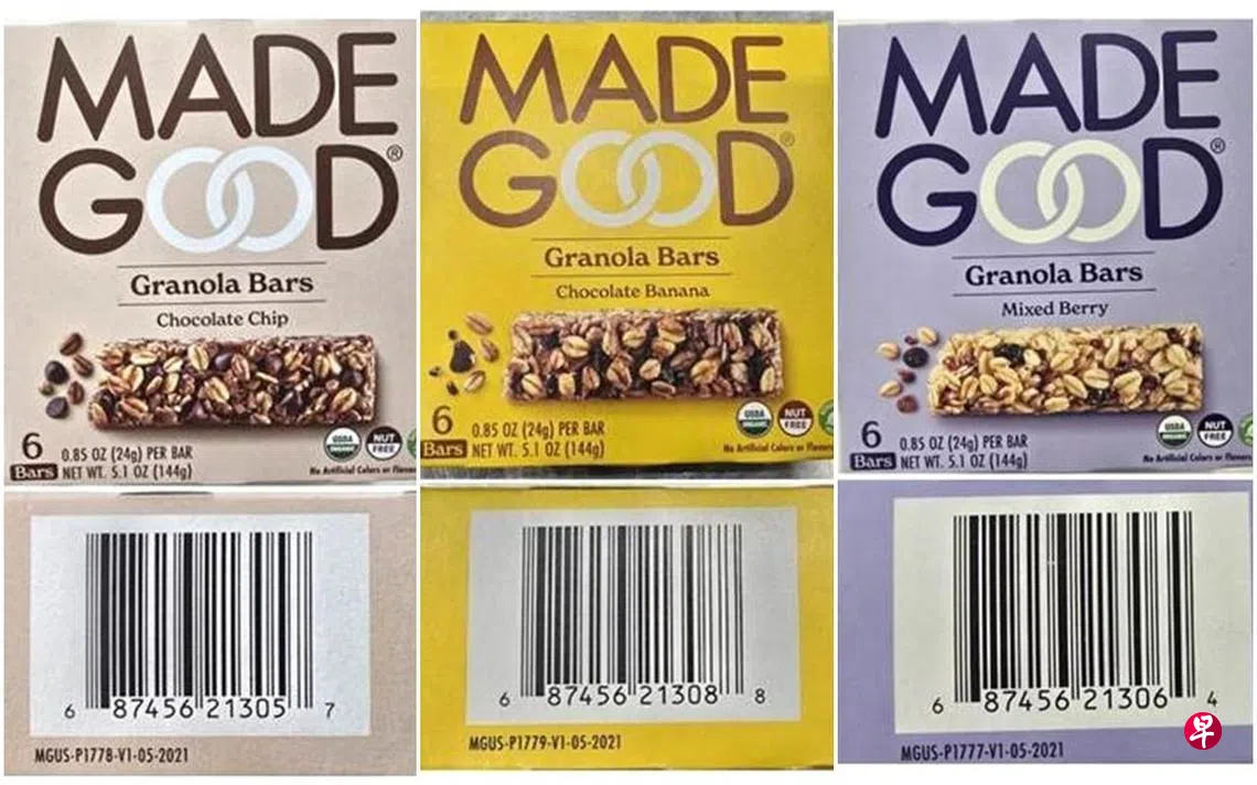 美国品牌“MadeGood”主动召回三款可能含有金属片的格兰诺拉棒产品。新加坡食品局接获美国食品与药物管理局(FDA)的通报后,已指示本地进口商召回产品。
