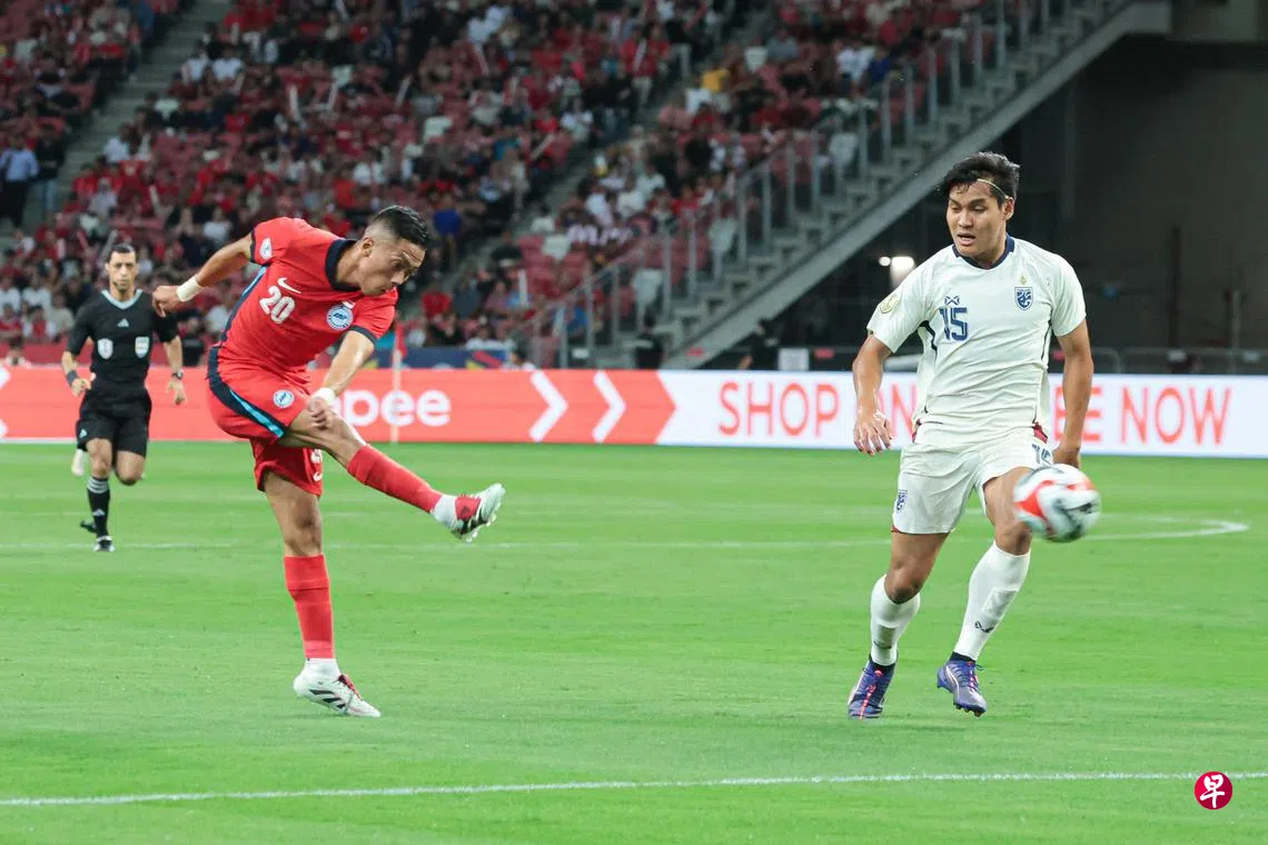 “雄狮”新加坡星期二(12月17日)在主场举行的亚细安足球锦标赛A组赛中,上半场以2比1领先来犯的劲旅泰国。