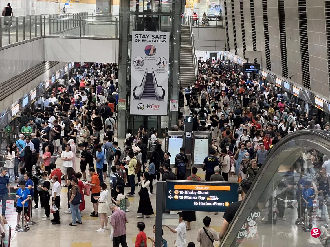 《联合早报》星期一(12月23日)接到读者通报,指多个环线地铁站出现大批人潮,有公众转乘巴士午间通勤。