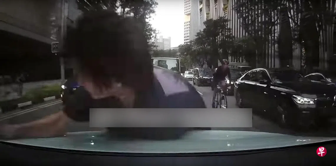 视频可见,男孩扑向轿车的后备箱盖上,骑行速度相信不慢,所幸事后并无大碍。