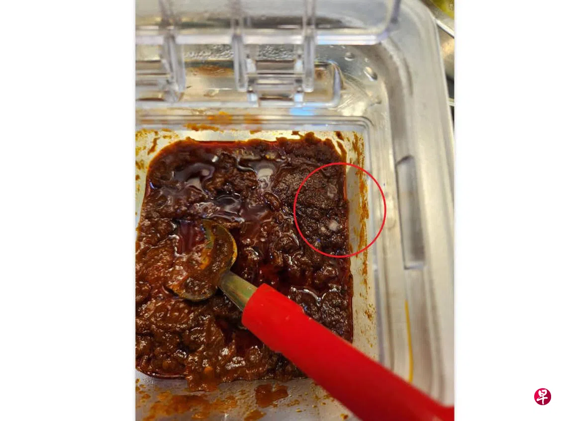 根据他提供的照片,辣椒酱装在一个透明容器内,表层长有疑似霉菌的白色网状物。记者星期一(30日)走访菜饭摊时,王姓职员受访时说,当天的确看到一名男子在档口外拿手机拍照。