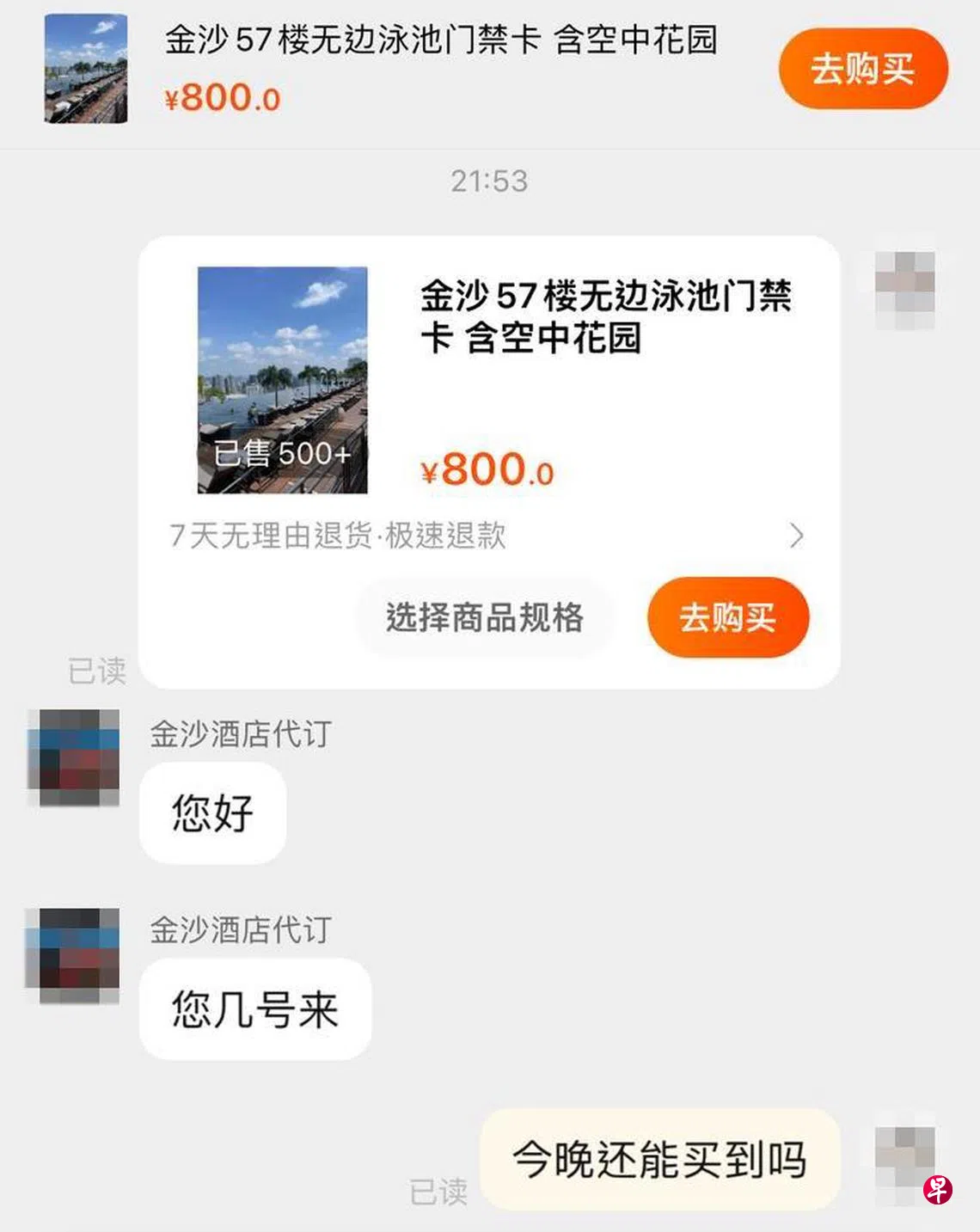 有人因此“抓准商机”,竟然在网上兜售金沙酒店无边泳池门禁卡。