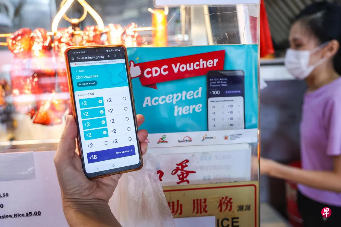 公众即日起可到go.gov.sg/cdcv使用Singpass登录领取邻里购物券。领取购物券后,会收到“gov.sg”发出的手机短信,里头含有购物券的使用链接。购物券有效日期到今年12月31日。没有智能手机或Singpass账户者,可到民众俱乐部求助。