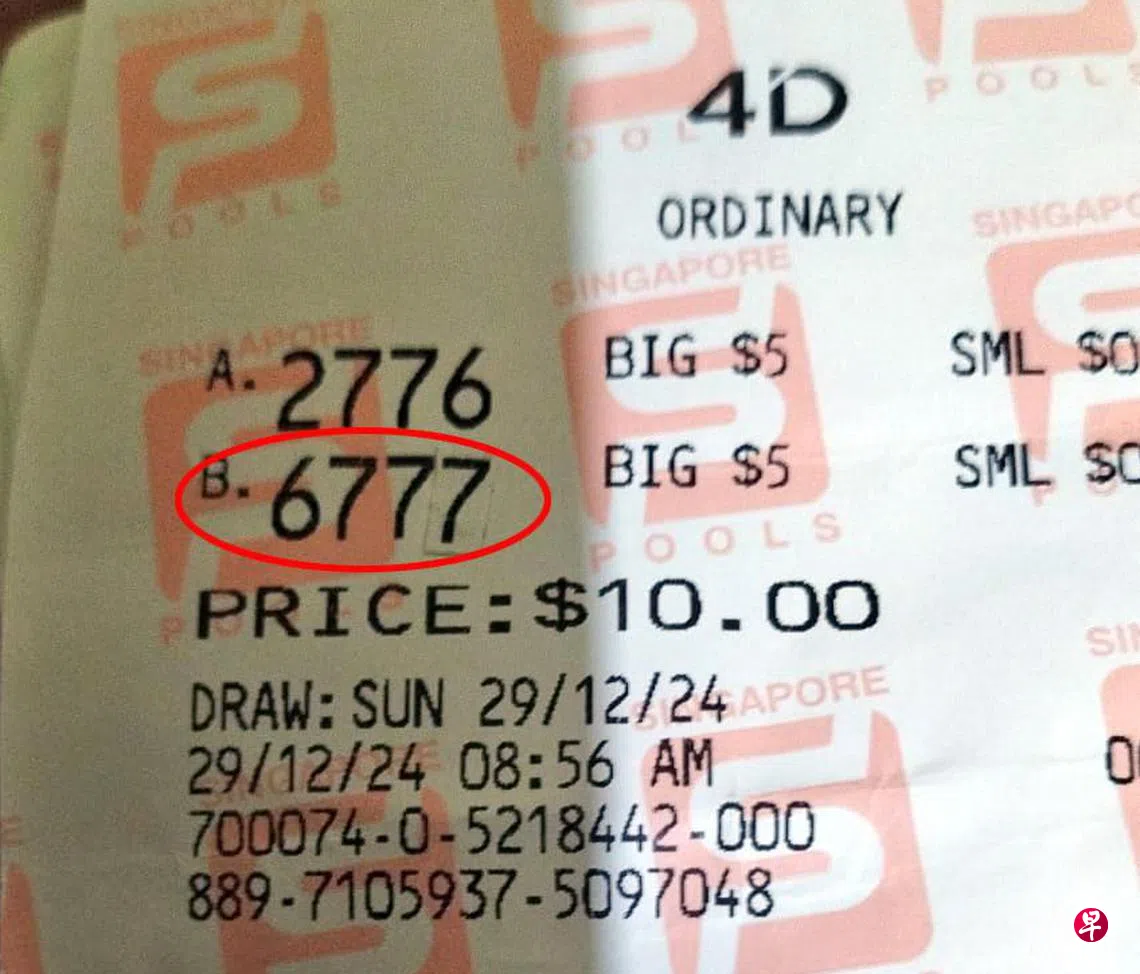 《新明日报》星期天(1月5日)报道,吴先生(70岁,厂工)主动联系《新明日报》,称他上星期二(12月31日)捡到一张当天开出头奖的万字票票根后送往警局,希望中奖者前去领取。