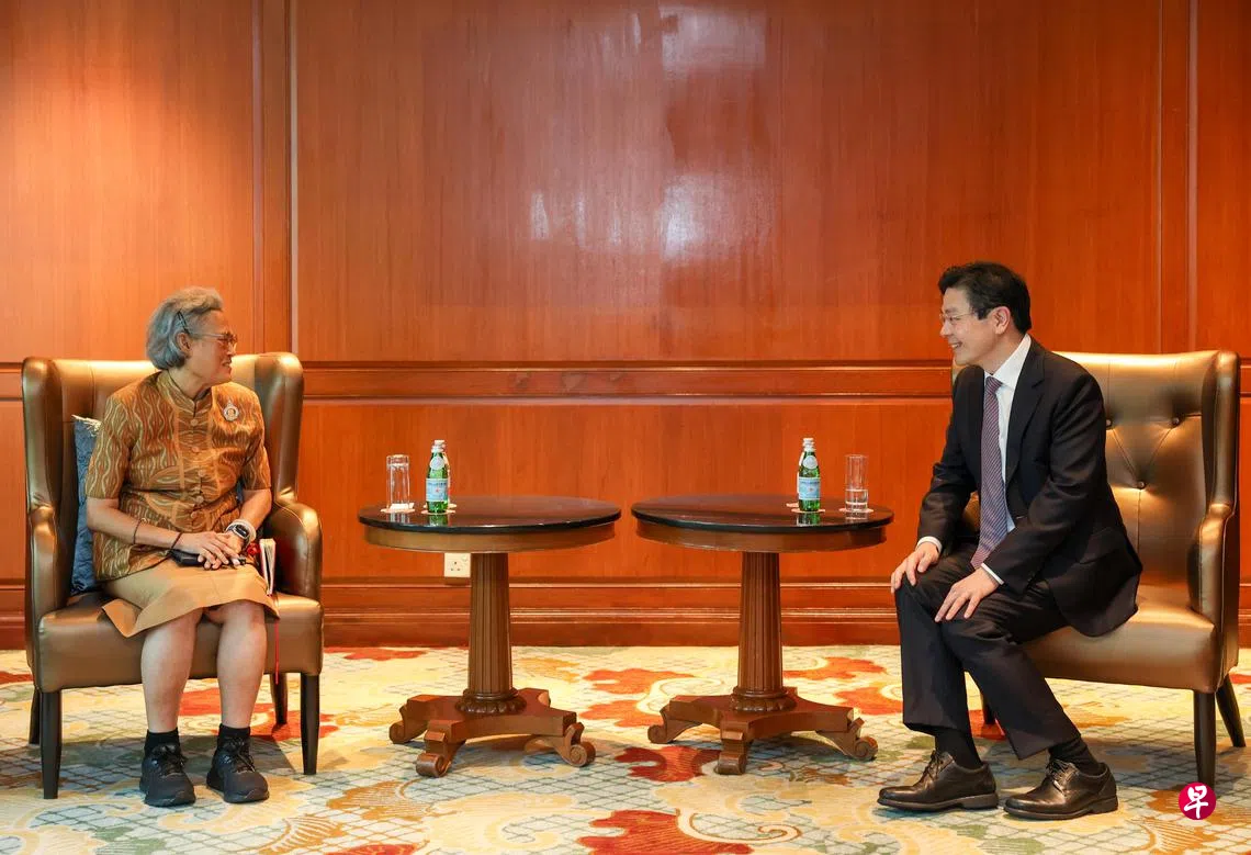黄总理星期二在马来西亚出席第11届新马领导人非正式峰会后,结束访马行程,傍晚回到我国,并在新加坡洲际酒店会见诗琳通。