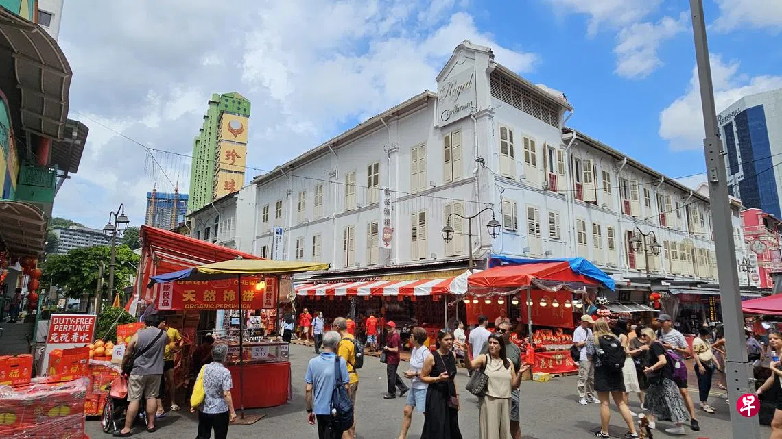 牛车水年货市场开跑首日,红彤彤的摊位在街道上延展开来,为这里增添了浓厚的新春气息,并吸引不少年长者、学前中心学生与导览团光顾,各个摊主也看好蛇年的新春买气。