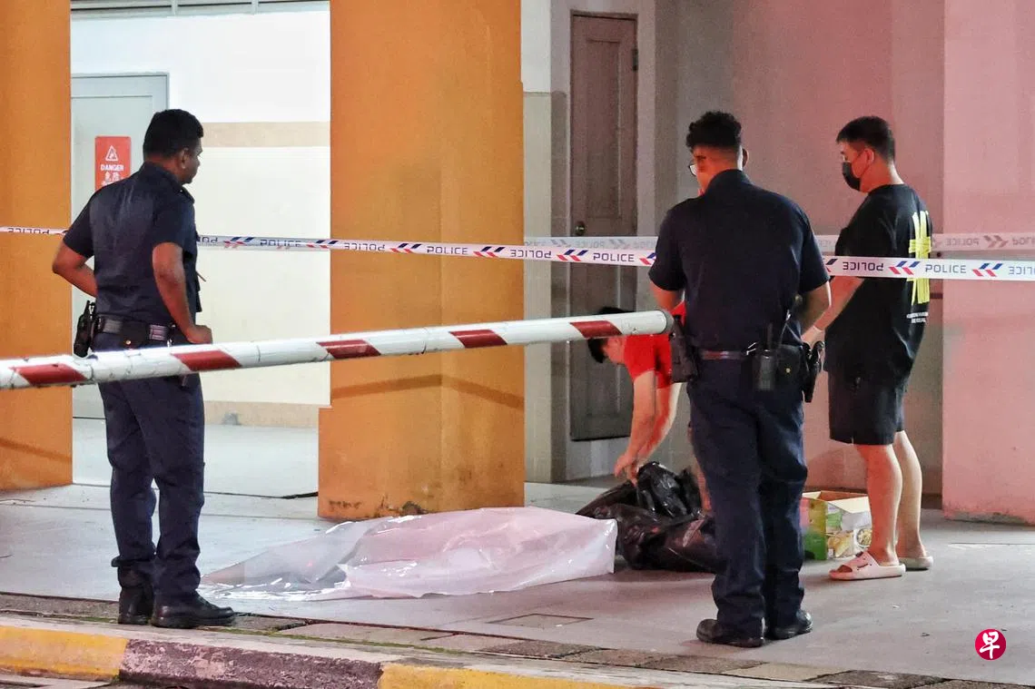 年迈狗在组屋坠楼亡,居民怀疑老狗被人扔下,警员挨家挨户调查和寻找狗主。