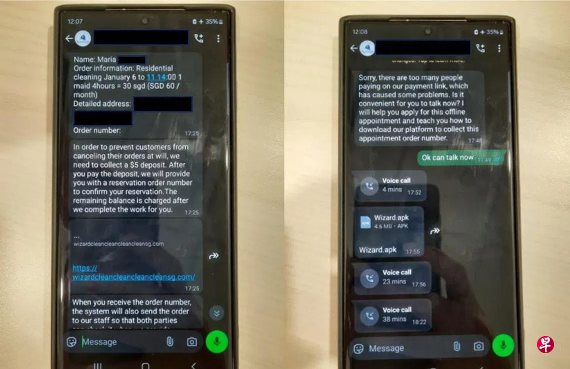 在近期发生的案件中,受害者在脸书或TikTok社交媒体平台上看到旅游和清洁服务的广告,并留下联系方式表示感兴趣。骗子就通过WhatsApp联系受害者,并发送链接要求支付五元作为会员费或定金。