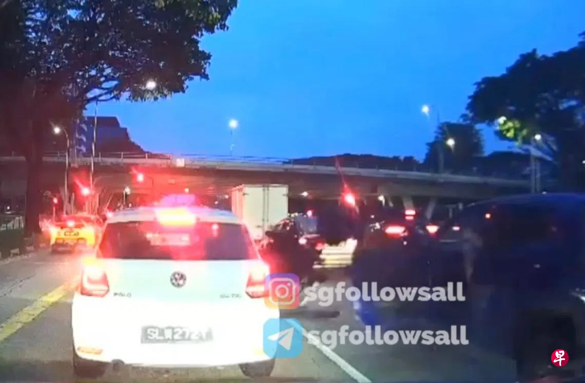 聊天应用Telegram群组流传的视频显示,当时所有车道的汽车正在等红绿灯,事故中的轿车停在第四条车道,副驾驶座的乘客,突然打开车门。