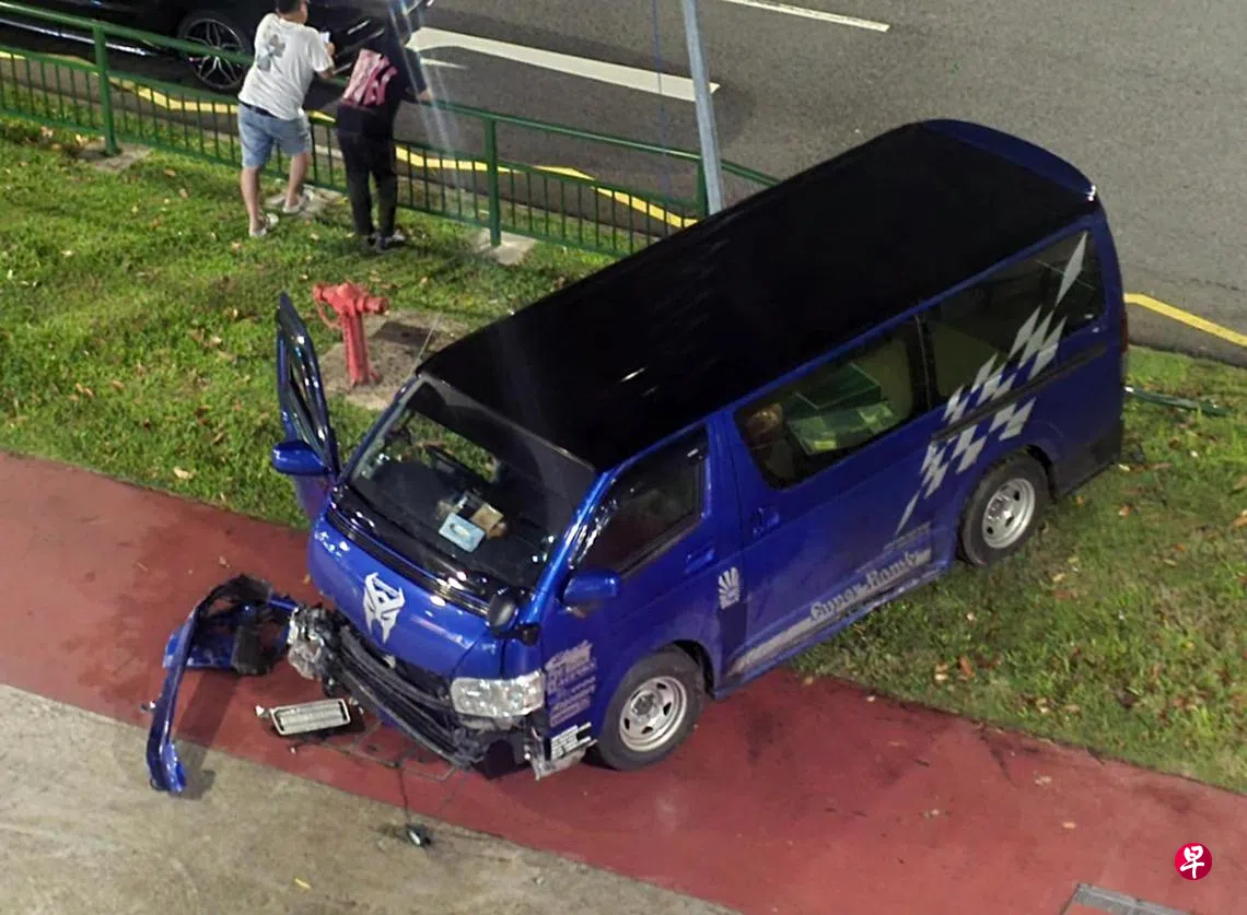 读者刘川豪(35岁,保安) 告诉《新明日报》记者,他当时在附近吃宵夜,突然听到一声巨响,随即前往查看。“一辆面包车撞上路边的围栏,20多岁的司机已经下车,看起来没有受伤,也挺镇定,说是打滑才发生车祸。”