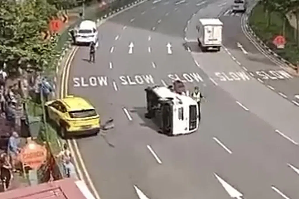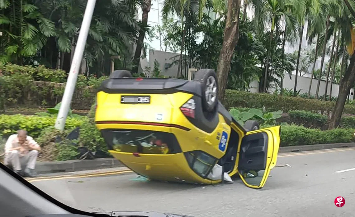 读者陈先生(60岁,私召车司机)通知《新明日报》,他载客经过时看到一辆德士翻覆在路上。“一名男子流血,当时坐在路边。附近还有几人,相信都是乘客。”
