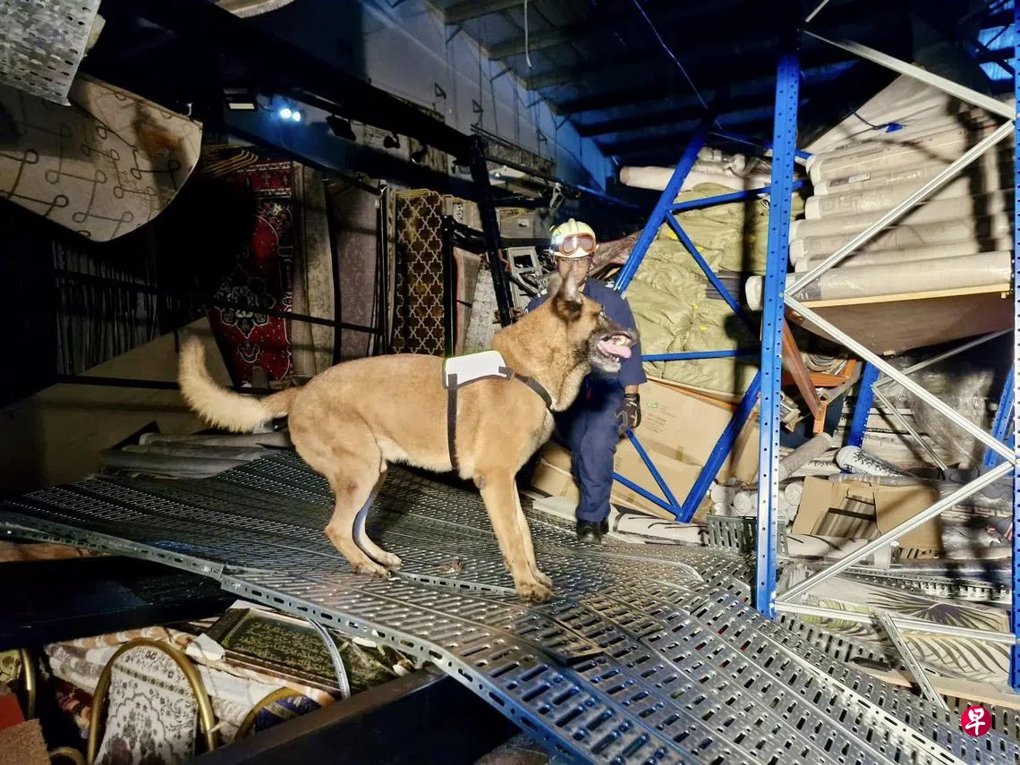 碧山消防局的消防员,以及特别紧急应对单位和灾难拯救队的救援人员到场后,开始在200平方米的受影响范围进行搜索。民防部队还派出两只搜救犬。