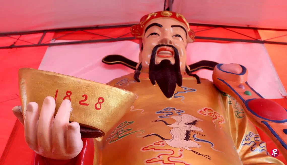 数年前由别人赠送,供奉在淡滨尼神庙的的财神神像出真字,让不少福至心灵的善信在大年初一星期三(1月29日)喜中二奖。