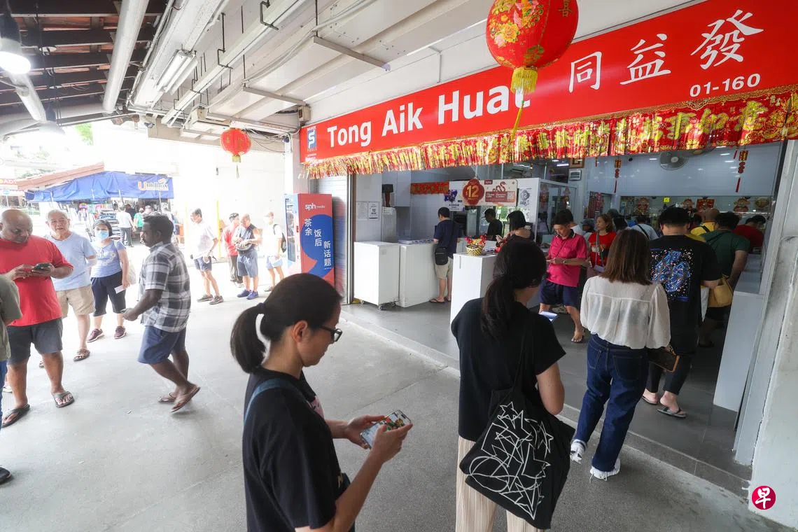 多多“旺地”后港同益发一早就出现排队人龙,中午烈日下的队伍从投注站绕到组屋楼下,延伸至停车场。不少人撑伞遮阳,甚至带着电脑边办公边排队,现场还出现前来募捐的慈善组织志工。