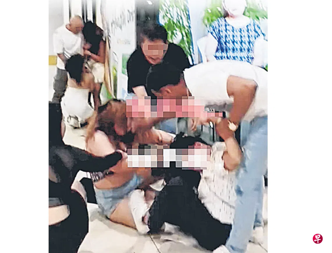 有公众上载了一段视频到脸书,当中可见四名女子在商场内的电动扶梯口区域爆发冲突,又拉又扯,还有几名男子在旁劝架。