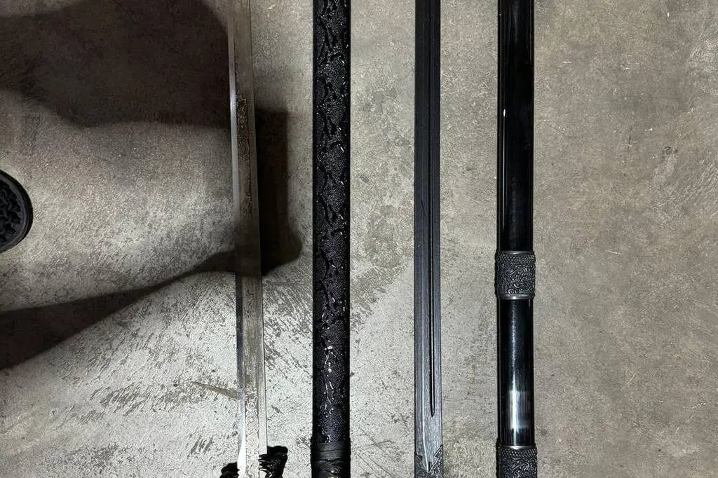 将不同刀剑混入集装箱内企图走私进入我国,移民与关卡局破获企图走私案,起获14把各类型刀剑。