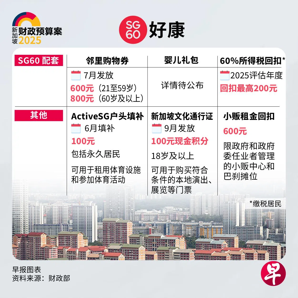 政府在2025年财政预算案中推出系列措施强化我国的文化核心和社区凝聚力。所有ActiveSG会员也可获得100元的SG60 ActiveSG现金积分,可用于预定ActiveSG设施和参加ActiveSG活动。