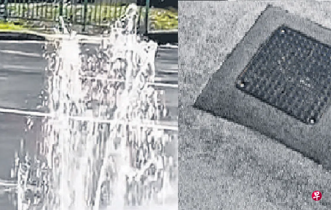 住在附近的居民甘尼诗(40岁)也说,他在今年1月也见过此景,但从阴沟喷出的水,水柱没有上周的高,他当时还拍下了视频。据他出示的视频,当时正下着雨,马路地面上的阴沟喷出五个水柱,有些车子经过时,还特地避开该处。